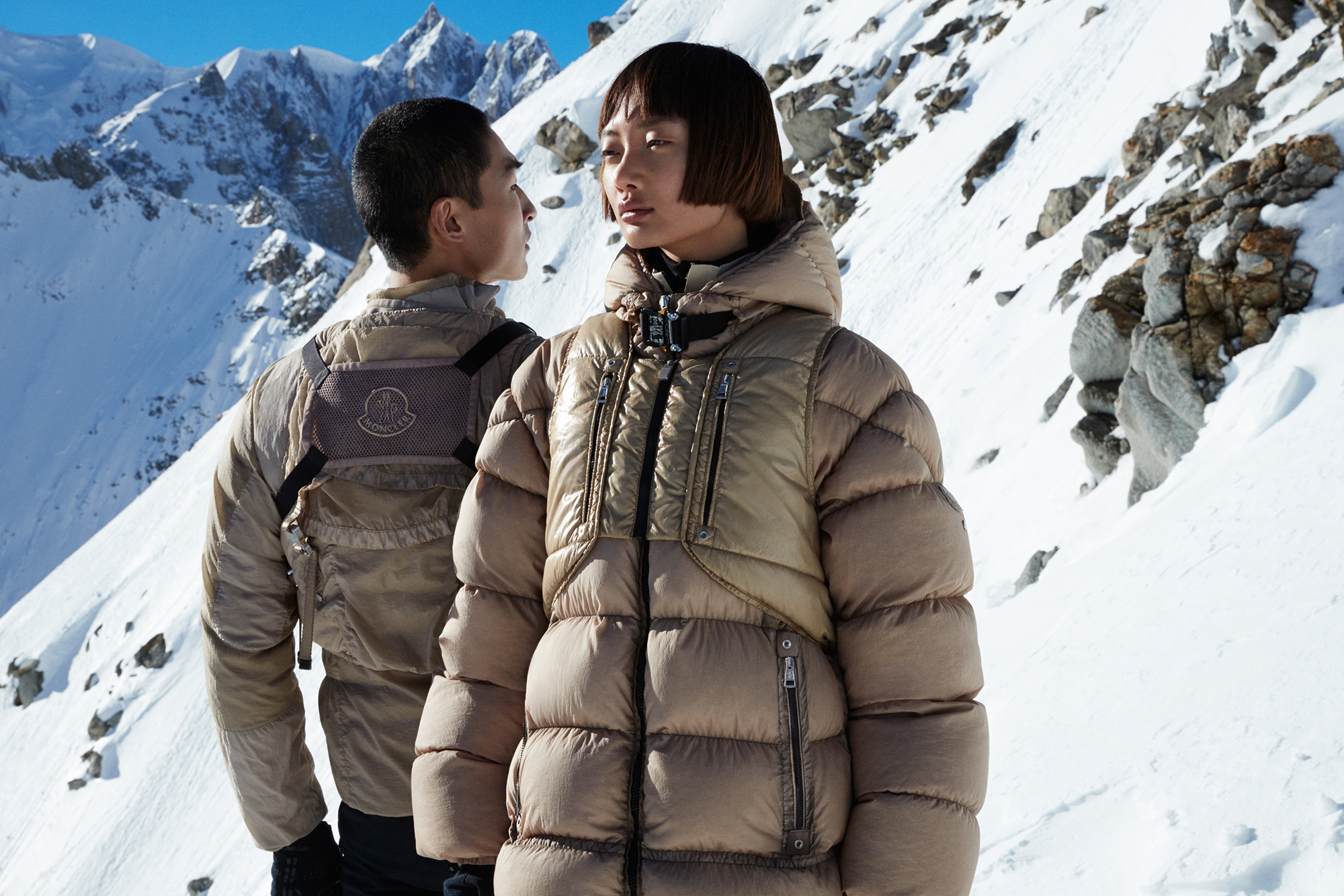Per la collaborazione 6 MONCLER 1017 ALYX 9SM, Matthew Williams si concentra su una palette di colori neutri come bianco, beige e nero.