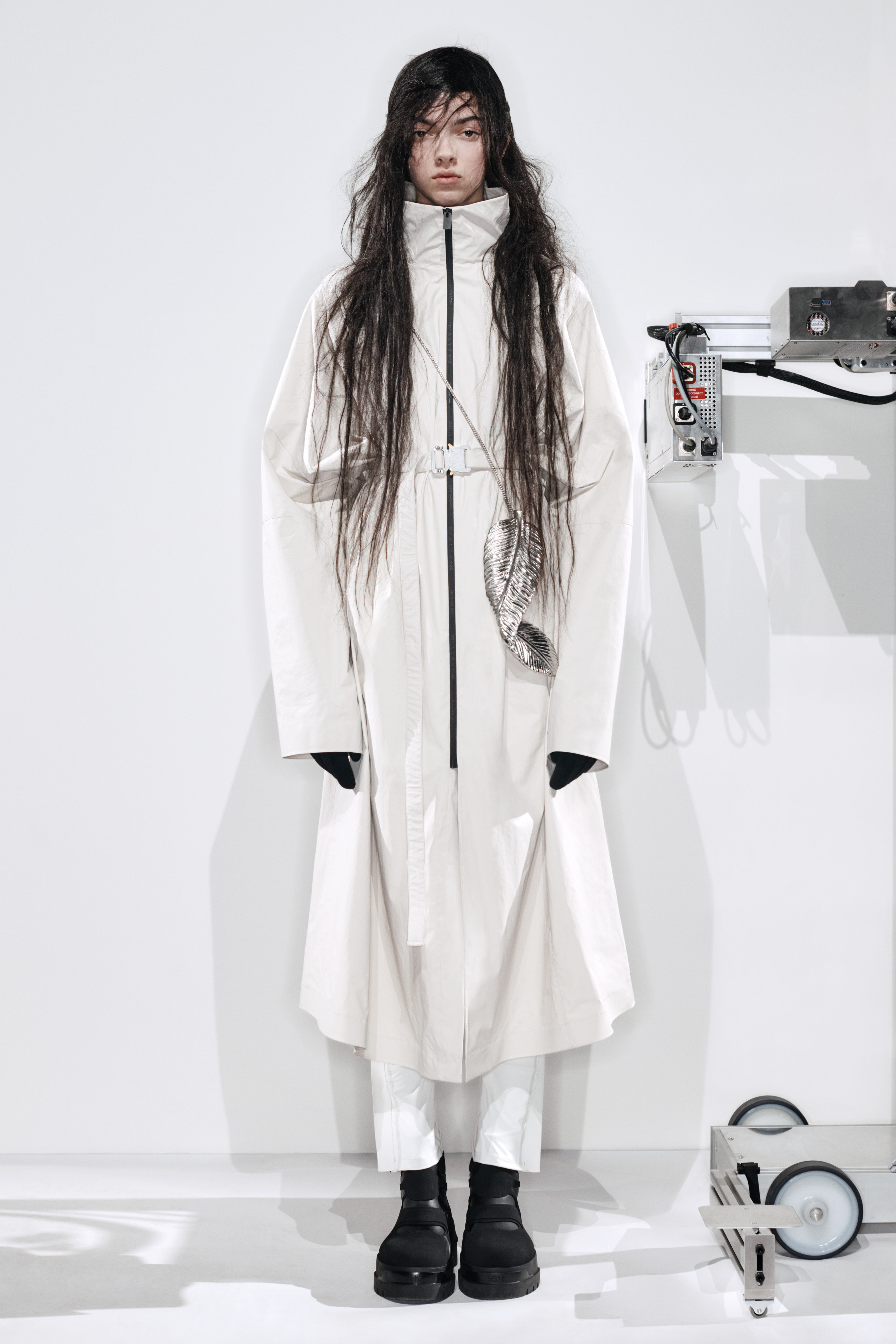 La collezione è composta principalmente da capispalla imbottiti e non che presentano giochi di luce grazie alle alternanze di opaco e lucido.