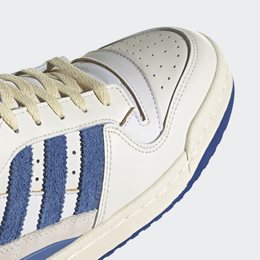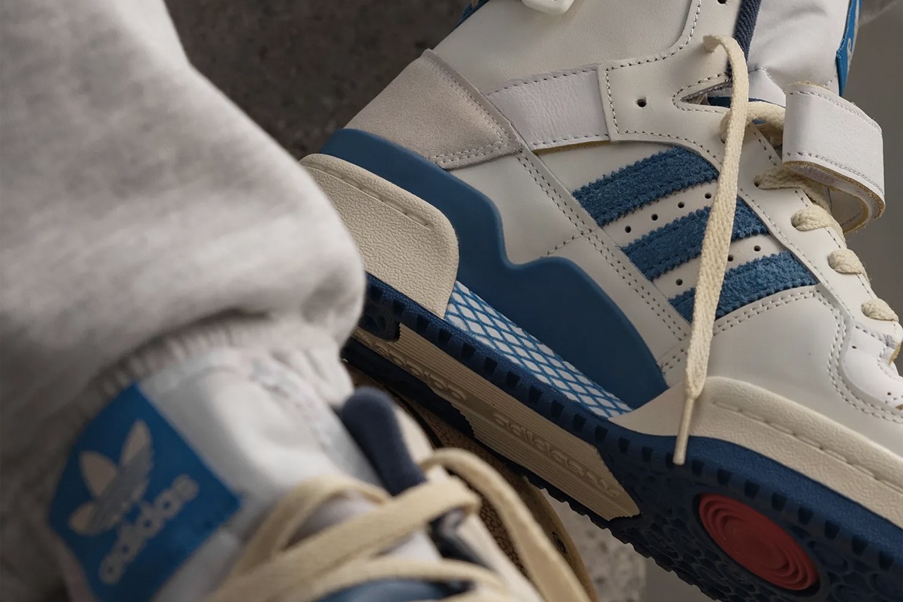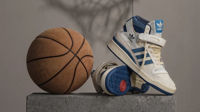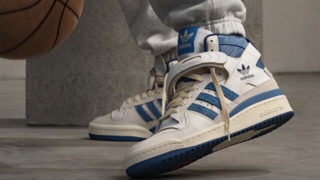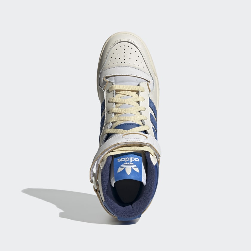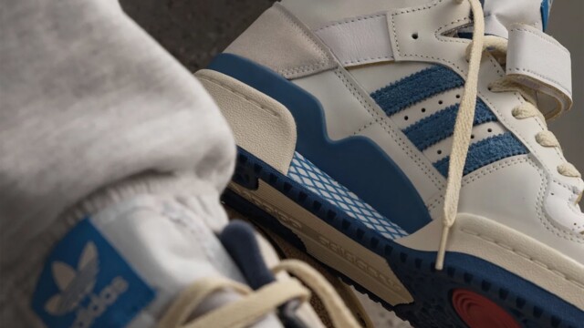 Persino il caratteristico cinturino intorno al colletto della Forum Hi, commemora ulteriormente il passato con la sua costruzione in pelle premium e bordi non verniciati. Le iconiche 3 strisce, i pannelli intorno alla caviglia e le suole, invece, prendono la classica colorazione blu accesso.