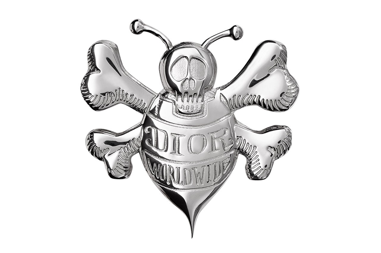 Il tocco di Stüssy lo troviamo proprio nella reinterpretazione del logo Dior Bee, presentato con un design stilizzato con tanto di teschio e ossa incrociate, e che prende una forma tridimensionale nei gioielli disegnati da Yoon Ahn, i quali includono un braccialetto di cuoio ed una collana d’argento. Inoltre, sciarpe di seta, berretti e maglie a collo alto sfoggiano “Dior” in un lettering scarabocchiato da Stüssy.