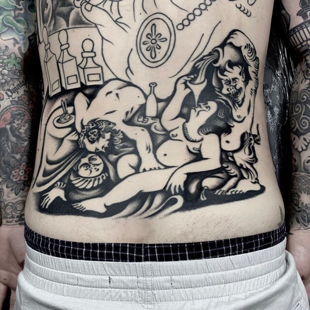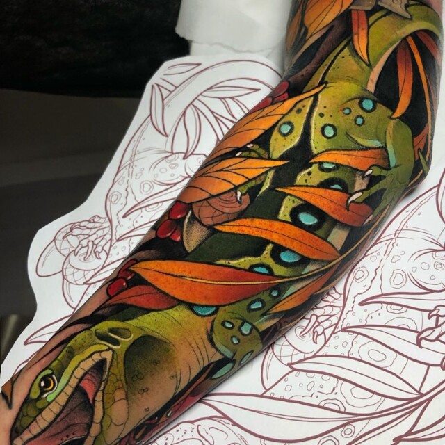 Looking at the bodies of people tattooed by Skandinsky is really a pleasure for the sight, so why not follow his IG profile?