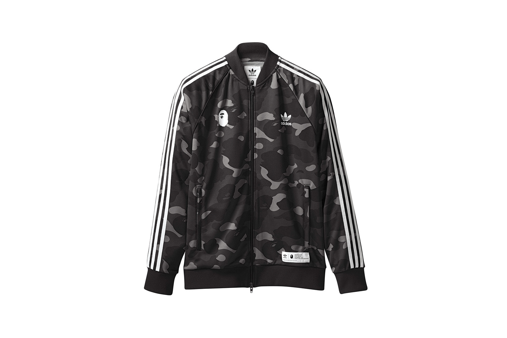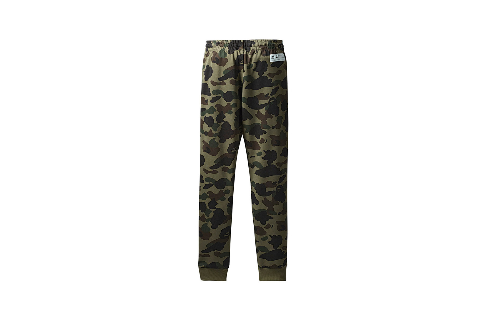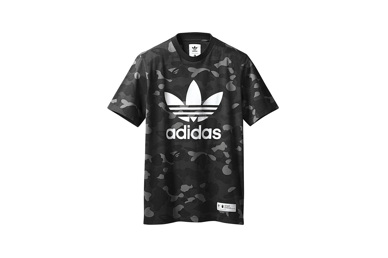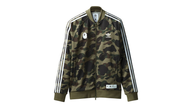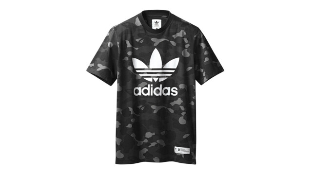 The latest collaborative range consists of t-shirts and tracksuits with zipped sweatshirts and long pants, all in the beloved camouflage pattern of BAPE which is based on the Adicolor line.