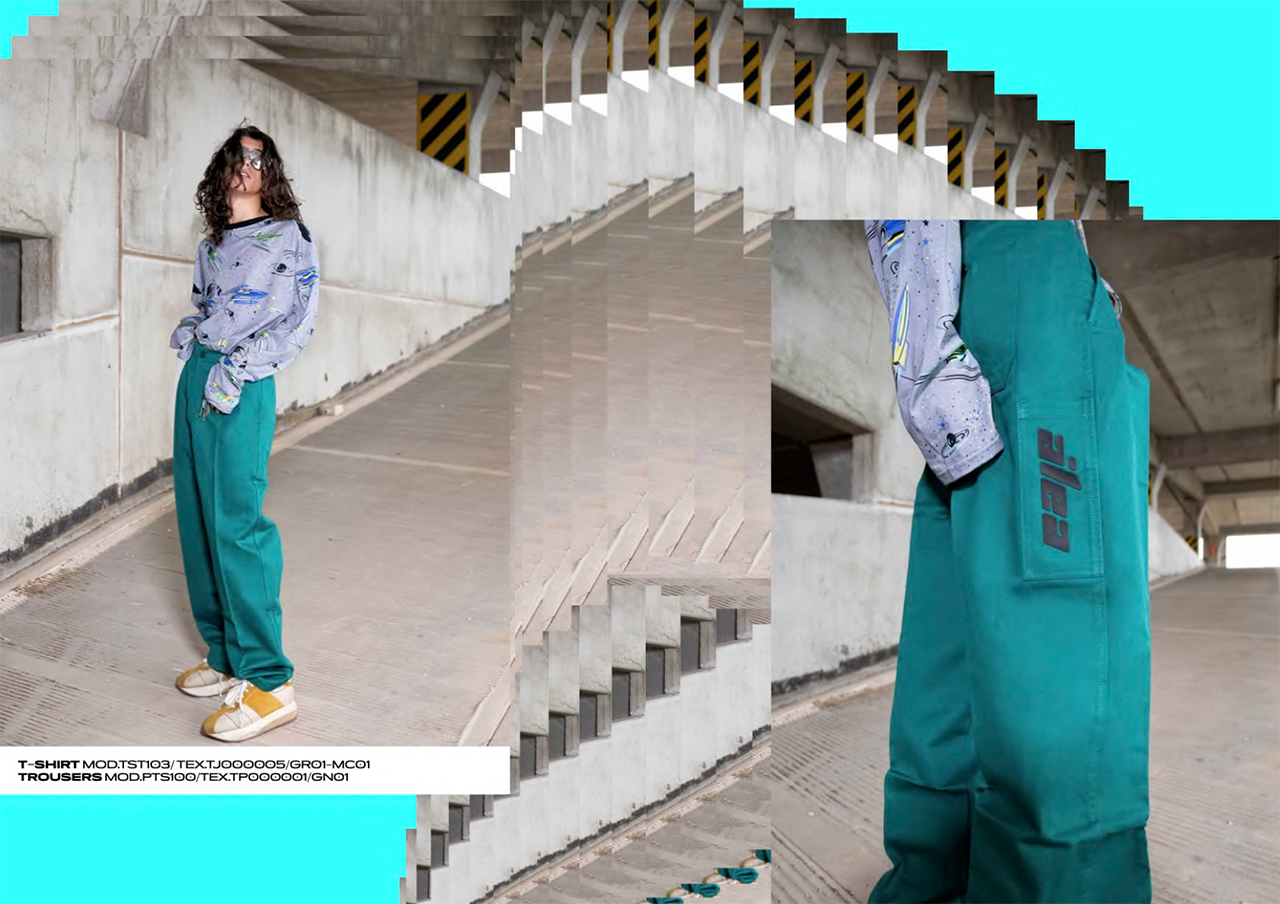 Italian technique with an international look for a total look of t-shirts, sweatshirts and pants with shapes and stylistic traits fished directly from the 50s, 80s and 90s, but revised in a digital key.