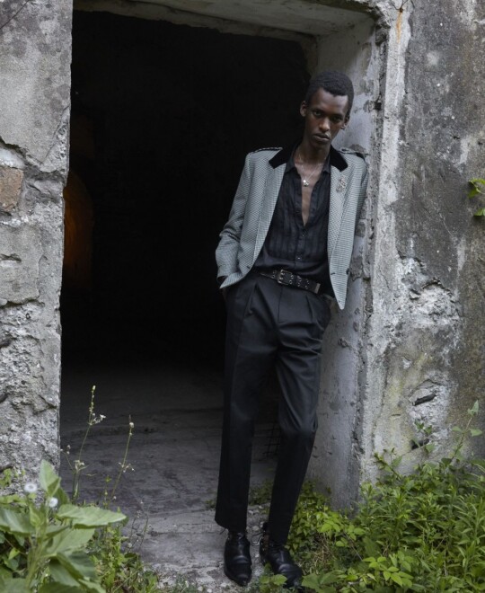 The looks mix a Gothic style, almost Victorian, and Rock’n Roll in contrast to fluctuating fabrics. Venice is not only the location of the fashion show but also a source of inspiration: rich fabrics and strong colors recall the tapestries of Venetian furniture. All in contemporary and cheeky silhouettes. A contemporary vision of clothing for men linked to tradition and tailoring.