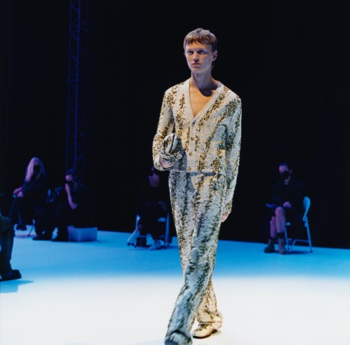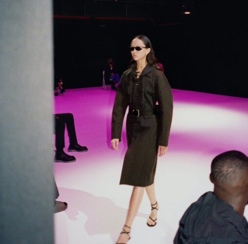Few guests, in a totally bare environment and a catwalk accompanied by a hypnotizing choreography of lights.