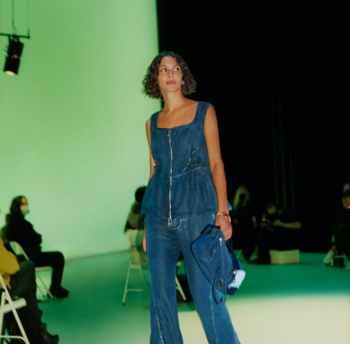 The collection reveals itself as a mix-and-match, between the trends of past decades and the introduction of a future design. She shows us future key accessories and minimal dresses in pastel colors, revisited with soft and comfortable fabrics, such as denim and crafted fabrics as crochet.