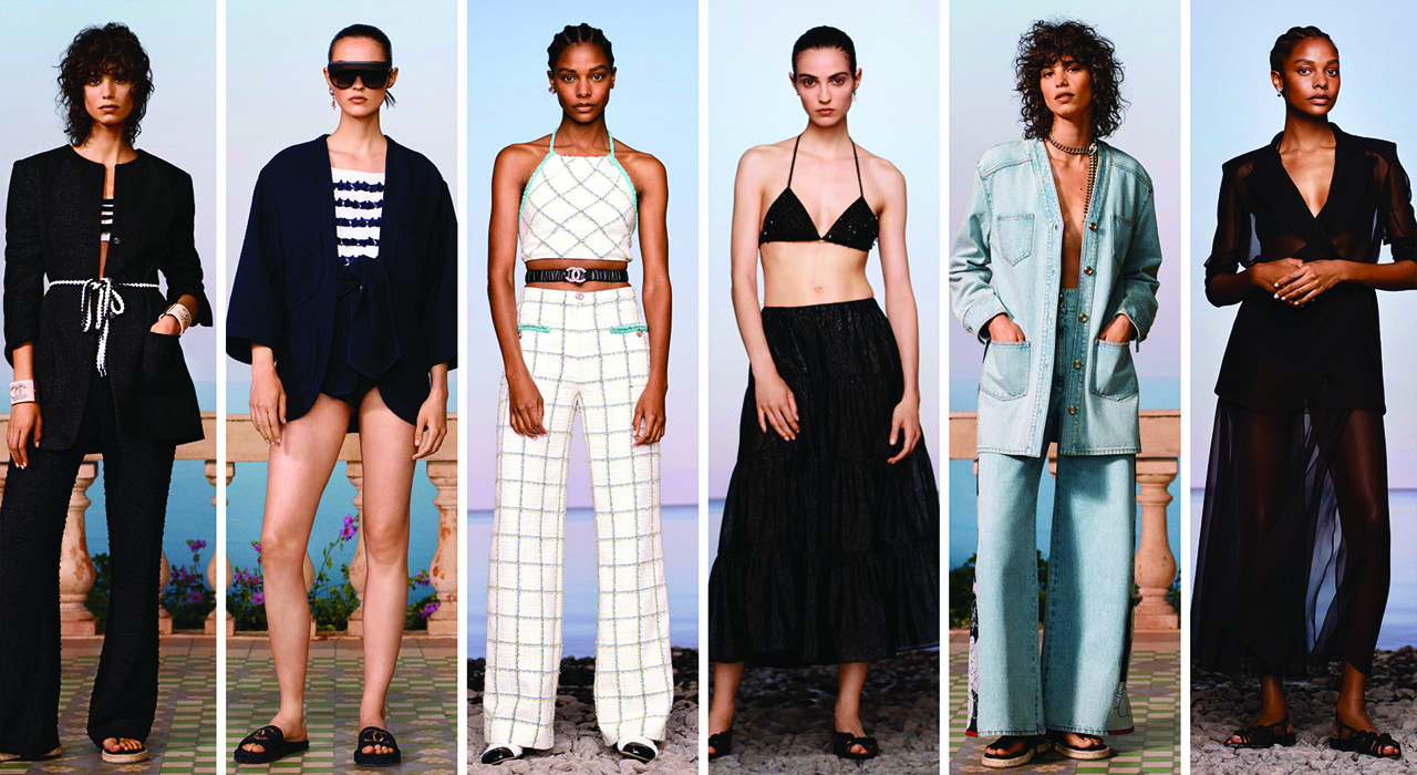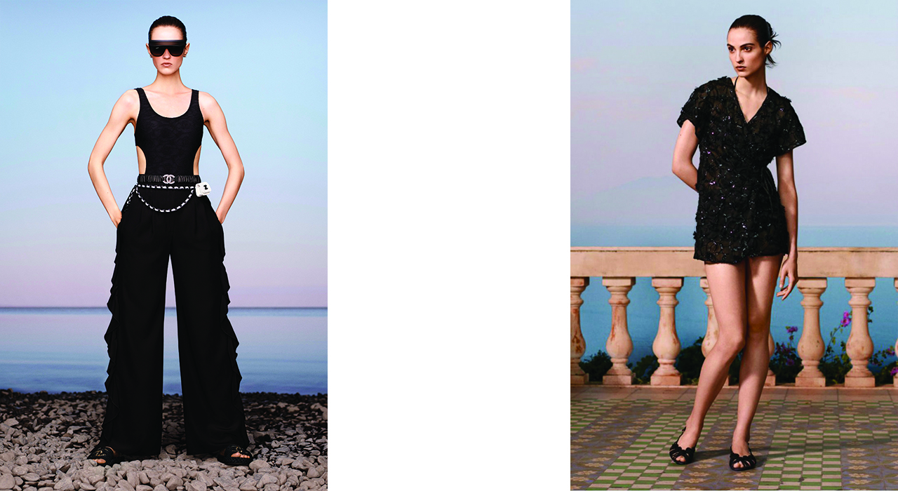 The sea, the flowers and the luxuriant vegetation are the protagonists together with the textures light and subtle of the transparent lamé , of the crêpe and of the tweed.