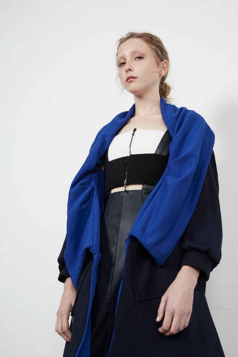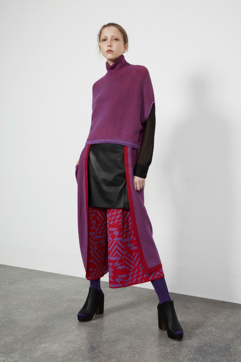 The convergence of these three elements, for me, generates a design object. The cutting edge does not necessarily exclude tailoring, care, attention to detail and all the knowledge of a culture based on craftsmanship as it is ours. I think knitting in this sense is just the emblem of everything I’ve just said: the blend of craftsmanship, technology and design. The way you wear a knit is a cornerstone of my collections: the “transformistic” jerseys inspired by the primordial shapes of the circle, triangle, and square can be worn overhead or backward, changing each time and making the garment multifunctional, versatile, free to be interpreted.