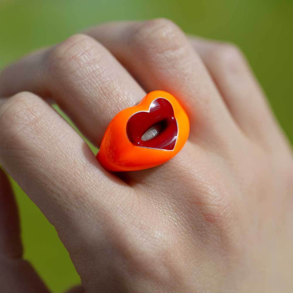Hotlips by Solange – Neon Orange Love Heart Ring