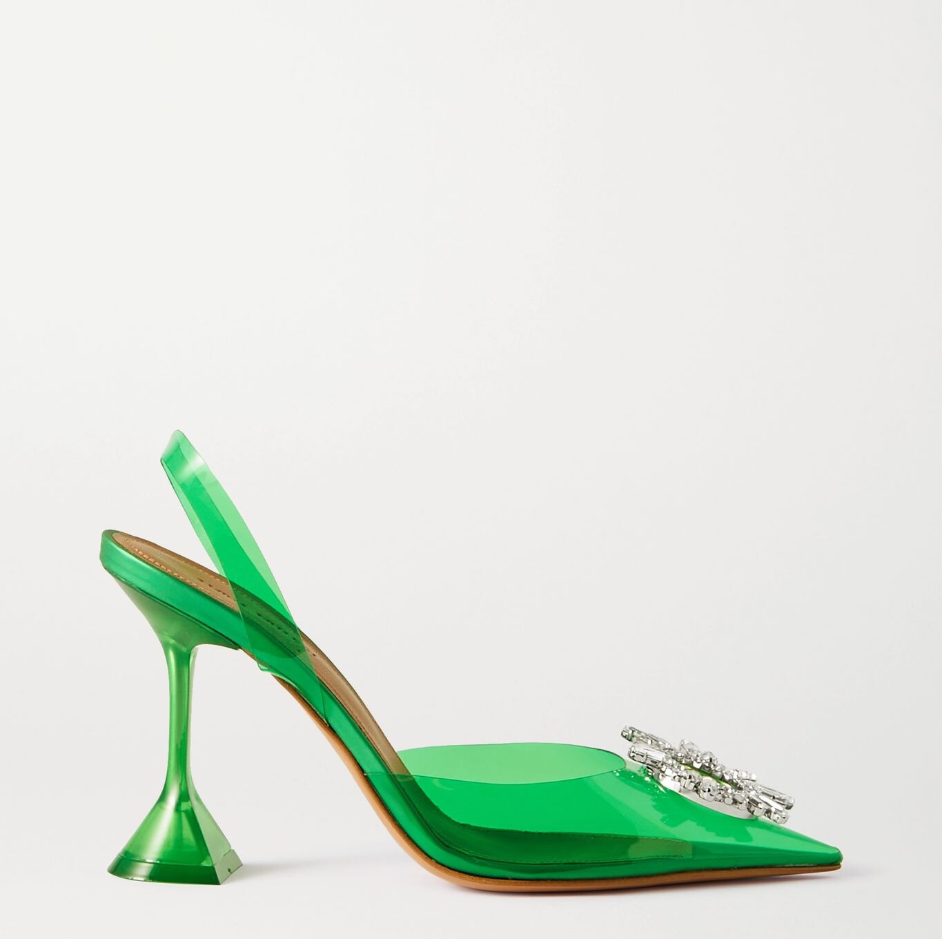 The Crystal pumps in green of Amina Muaddi are lively, frivolous and funny, you can not go wrong!