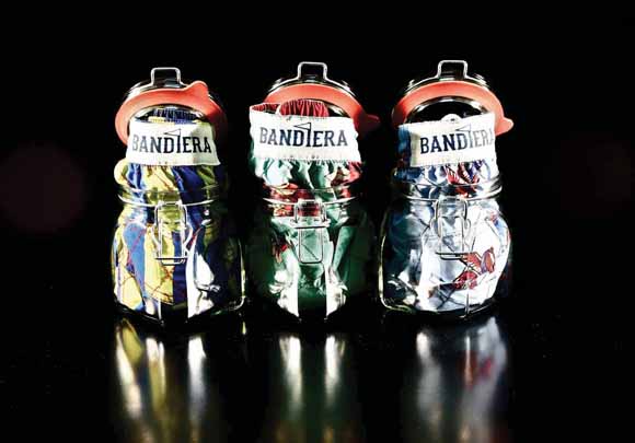 TELL THE NEXT COLLECTION. WHAT WE EXPECT? First of all, I want to clarify that the collection that we presented and on which we focus are threefold: Blomor, Badmor and Bandiera. Blomor is our collection pop, which relies increasingly on innovation, originality, creativity. It consists of capsules with different images, each with its own specific force, an inspiration to motocross, one inspired by the world of hip hop, one linked to the surf and of course the most important part is that the technology in partnership with Hi Fun the real reason for innovation and originality of this collection. Badmor is our brand fashion / rock, completely made in Italy, who dresses a woman and a man attracted to a strong taste, lovers of the world of the night. A collection based on cuts, mixed media, all guided by the stylistic inventions black & white, as fashion is demanding more and more this season. Bandiera is our last child who is making us dream. Born with a clear idea, namely that the market lacks beachwear for men. Who makes them, it seems to make them more and more in a banal and too classic, without a hint of creativity, in Italy and in the world. Starting from this assumption we decided to combine the extraordinary ability and graphic art Iucu with an innovative idea, never attempted by anyone selling the first custom quilted, stitched lozenges. The target is more mature and classic compared to Blomor but our imprinting is always the same, to be innovative, to get first, to be loved for originality. Orders are proving us right. In the summer of 2015 Bandiera swimwear will be in the best places in the Mediterranean and worn by the most beautiful people, where beauty does not mean wealth, glam aesthetic or (perish the thought), but I mean the spirit of creativity, innovation, be leaders and not followers . And then there’s one last surprise project, which we do in the ad preview: we’re launching a capsule collection of shoes. We will leave on sale in August and September with a collection Blomor and Bandiera Footwear with two models, one with laces and a slip-on, with our most beautiful digitally printed graphics to accompany perfectly Blomor clothing of the most colorful and Bandiera boardshorts and the polo shirt with his shoe in combination. As you can see we have of irons in the fire, I have to really try to rein in the creativity of Iucu, Ilaria and Massimo.