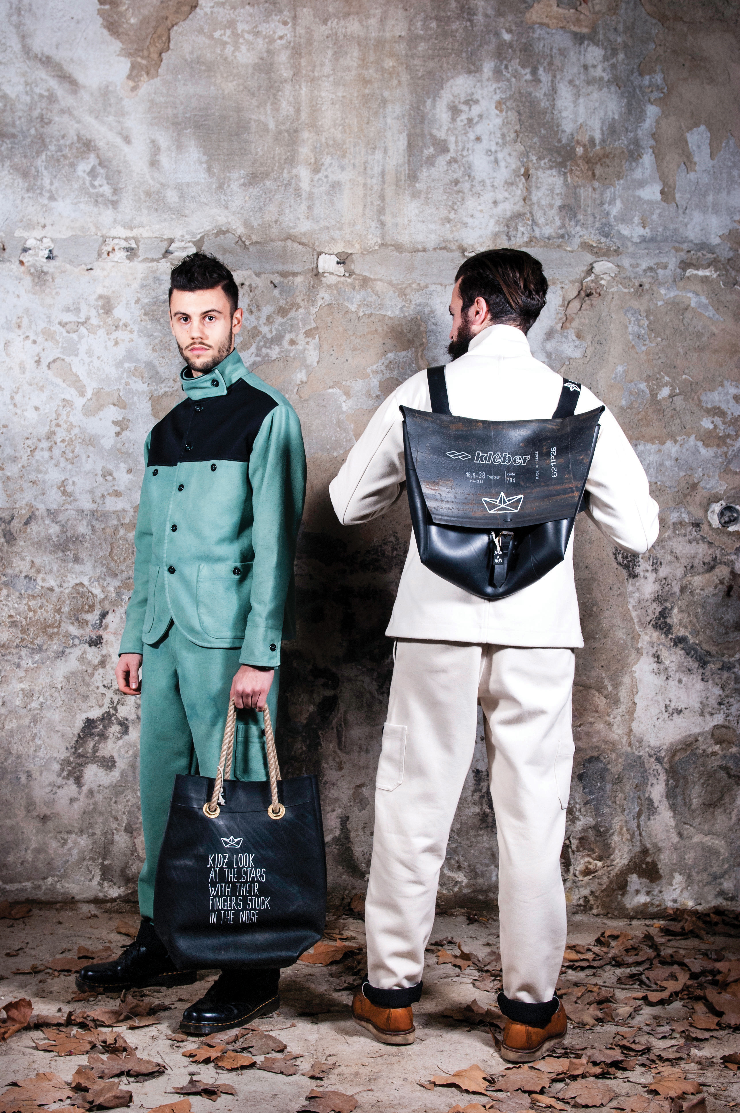 Another thing that I tell you of the winter collection is actually one thing I’m really happy: as I told you before that my goal is to be a ‘creative workshop even before a brand; Well in Dockslands Calling, for the first time a craftsman intervenes outside of my own collection. And born of bags made from the inner tubes of trucks. I belive they deserve to be seen at least. At least.