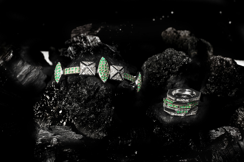 I’m fascinated by the shapes transfiguration. I declined the vibrating geometries and distorted Fuksas’ “The Big Lantern” especially in the rings, proposing acute angular cuts and to create style complements with an unprecedented and architectural appeal. The initial inspiration came long ago, while I was walking to Rome and watched the work in the distance. I immediately thought that this structure, immersed in an environment so full of references from the past could reflect in a sense my idea: to give new impetus to the traditional jewelry with a new and contemporary way without forgetting its origins and our culture.