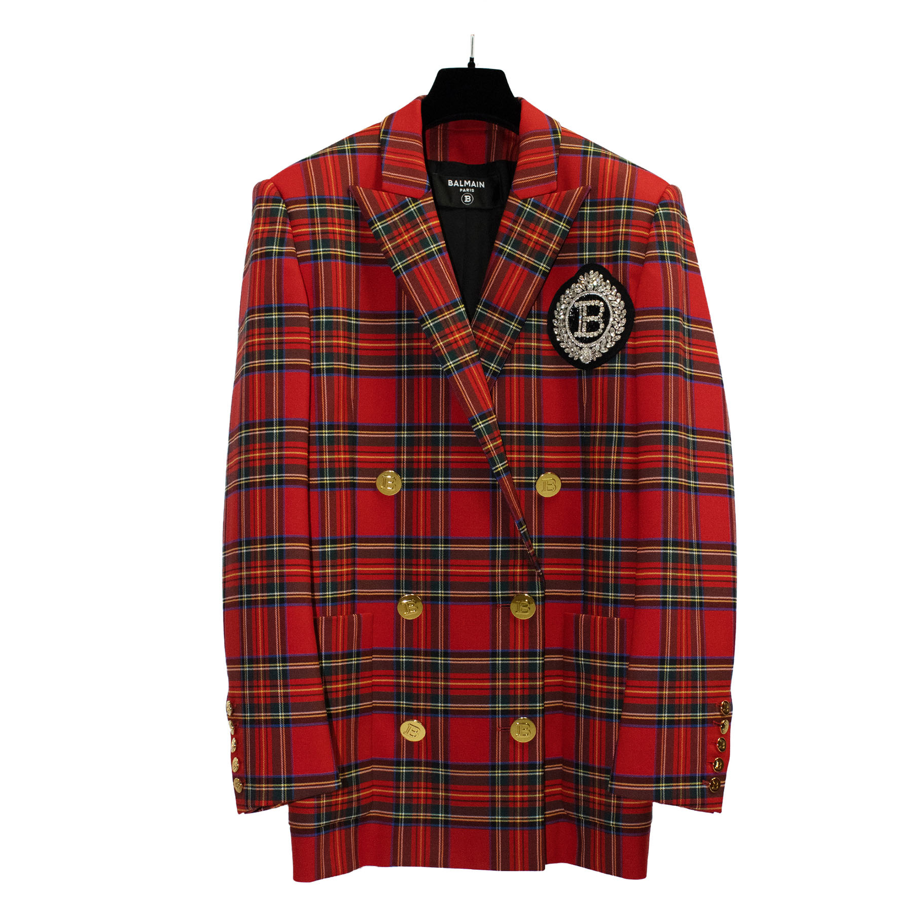 Fusion of comfort and glamour: the Balmain jacket in red Tartan is a must-have for Autumn/Winter 2020-21.
