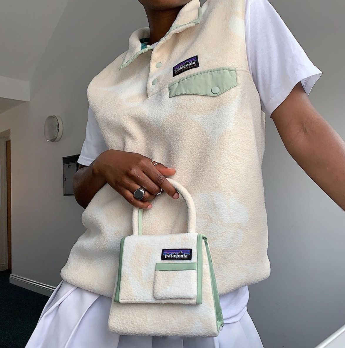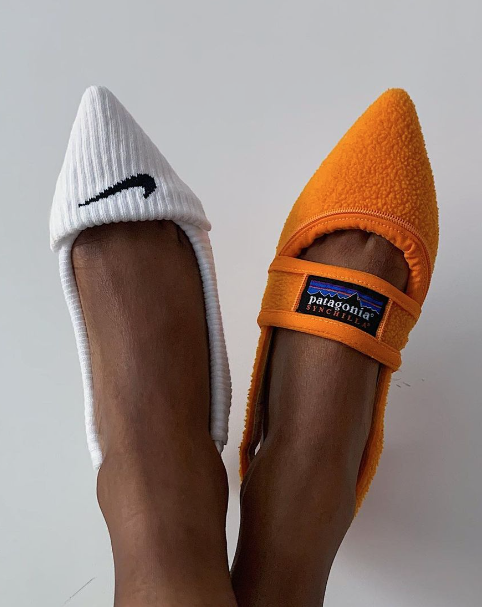 Tega Akinola, with only 22 years and a degree from an undefined London college, has made a lot of talk in the world of streetwear for having transformed iconic garments of Nike and Patagonia brands into décollé or clutch bags.