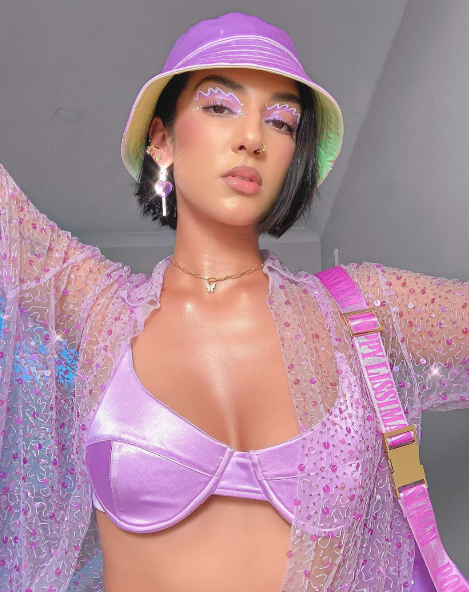 By combining her singular and eccentric sense of style with her Punjabi heritage, Rowi creates vibrant and original beauty looks that once again are the result of the encounter of two different cultures.
