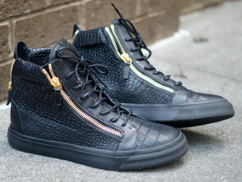 Le hi-top si Giuseppe Zanotti, in modo particolare quelle nere, con la tomaia in pelle martellata o ad effetto coccodrillo, solcate da una doppia zip, argento o oro a nostro parere sono tra le sneakers più belle di tutto il panorama mondiale. Il prezzo? Da griffe pura, sugli 800 dollari…