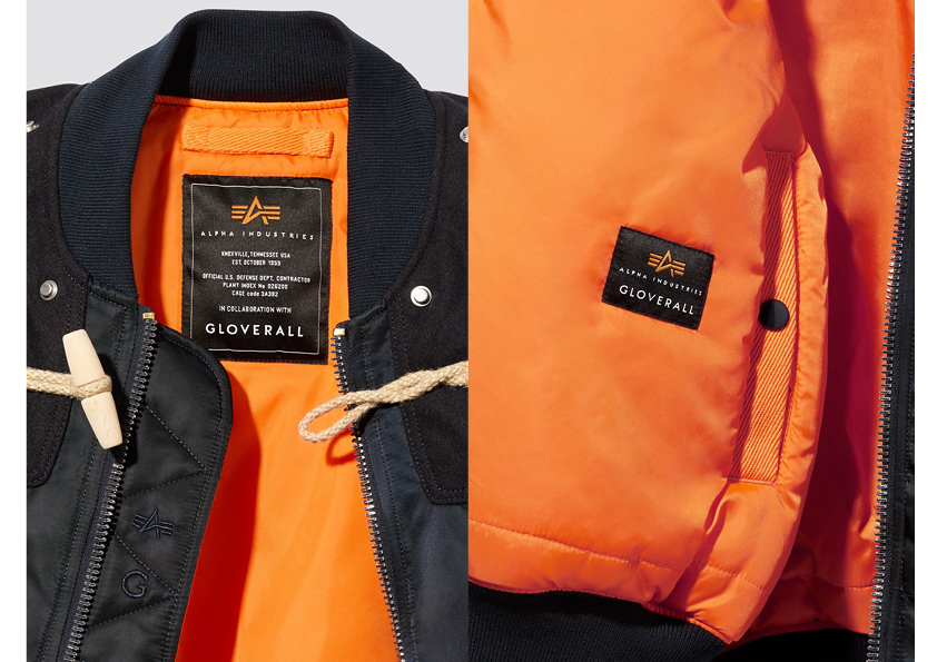 Gloverall, brand inglese conosciuto per i suoi Montgomery, rielabora il modello MA-1 Alpa Industries aggiungendo dettagli distintivi dei suoi capispalla. Il risultato, è una combinazione di ispirazioni militari e aeronautiche con dettagli dal gusto inglese.