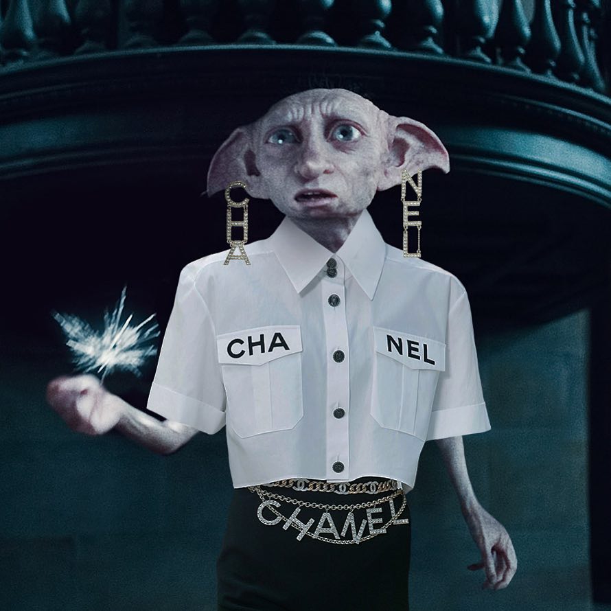 Ma Rachel non poteva che assegnare un brand anche agli elfi, nasce cosi CHANELF e il tenerissimo Dolby, al fianco di Harry in ogni sua missione contro il signore oscuro, veste Chanel con molta disinvoltura!