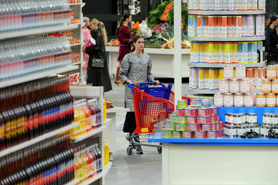 Karl Lagerfeld trasforma il Grand Palais in un supermarket targato doppia C. Per l’autunno inverno 2014-15, Chanel firma e brandizza un intero supercato ed i suoi prodotti e gli abiti passano in secondo piano. Spaghetti, prodotti per la casa, zerbini…tutto rigorosamente Chanel. E le foto rimbalzano su Instagram alla velocità della luce. Qualcosa che offusca gli abiti e il senso della sfilata stessa. Ma Karl Lagerfeld sa leggere il suo tempo e sa che lo show è molto importante. La moda oggi è brand, immagine, scatti postati su Instagram. Cosa te ne frega del tailleur quando hai un pacco di spaghetti firmato Chanel?