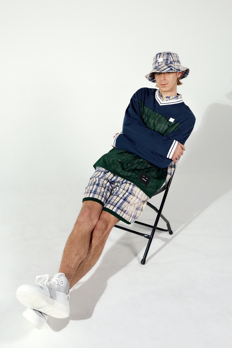 L’ampia e variegata selezione prende ispirazione dal mondo streetwear e sportswear, dando vita ad una capsule collection che nel suo mix and match sa comunque trovare il suo senso ordinato. Motivi a quadri colorati cospargono giacche coach, pantaloncini in stile basket dal valore di 250€ e sneakers in coordinato in flanella. Il tutto in una di combinazione di colori sbiaditi che dal blu navy spazia al giallo, dal grigio chiaro al viola e al verde bottiglia.