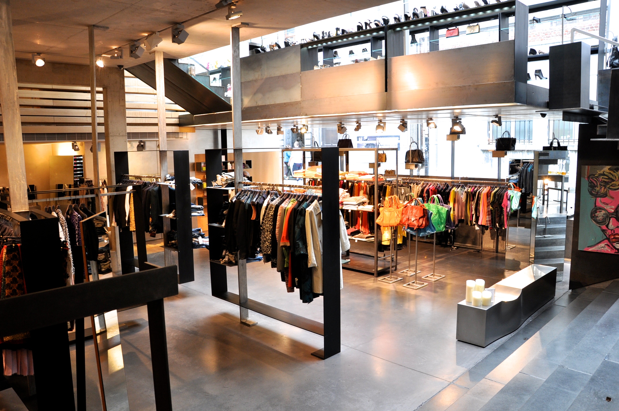 Le vetrine sono rinnovate ogni stagione per scoprire le meraviglie della moda e dei nuovi arrivi, all’interno si innalzano colonne di cemento, di vetro e legno, che danno allo spazio una dimensione sensazionale.