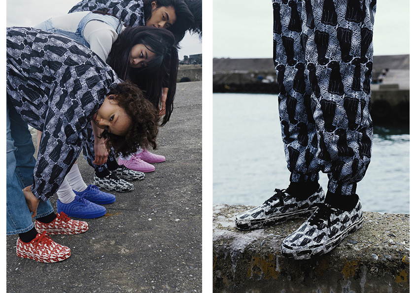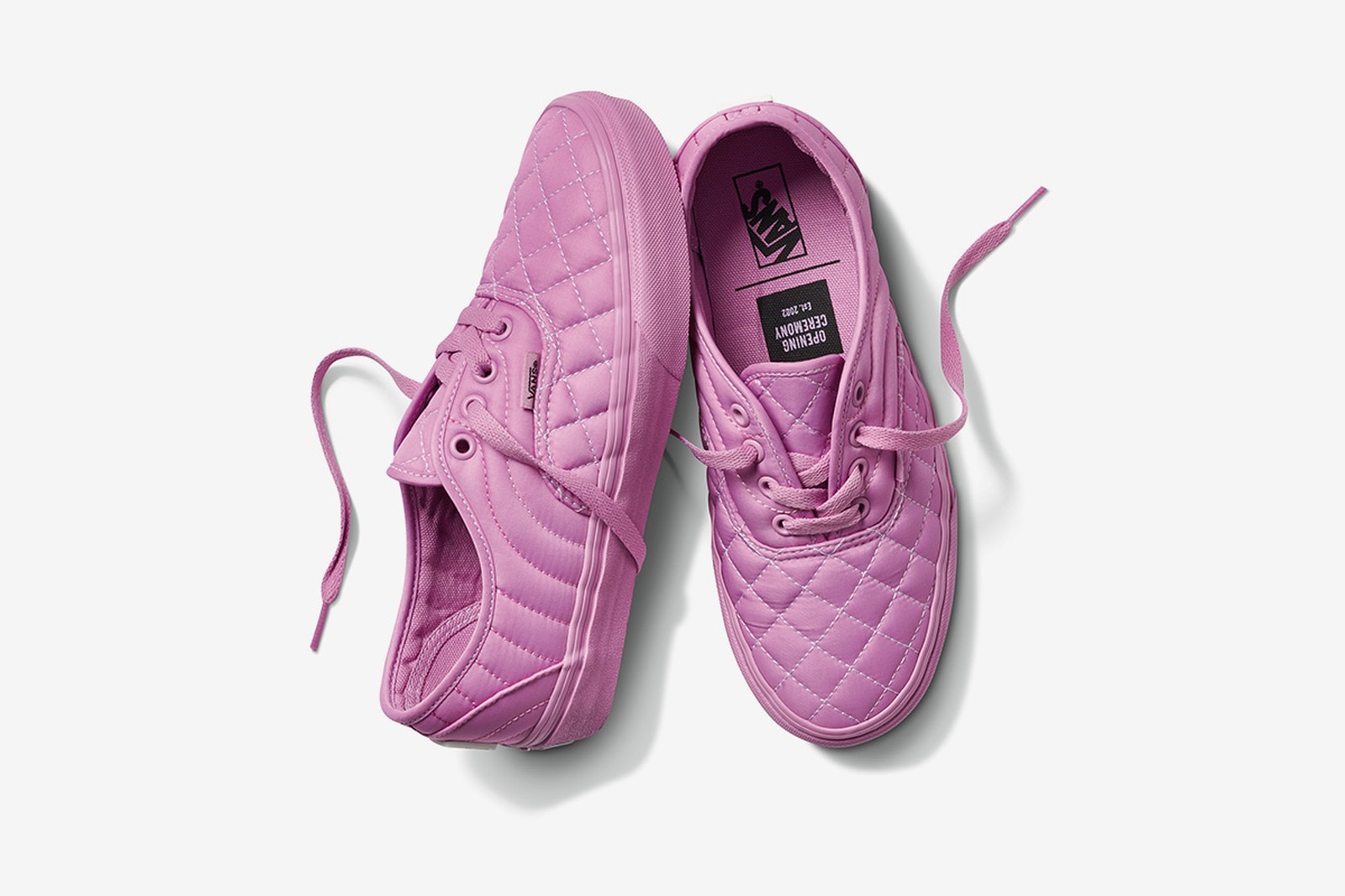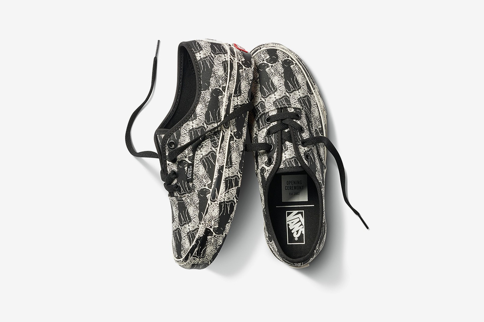 Per l’occasione, la caratteristica stampa checkerboard di Vans, è stata trasformata in un motivo pitonato e leopardato ripetuto sui capi e sulle Vans Authentic, sia sulla tomaia che sull’intersuola. Una seconda linea di scarpe comprende le Authentic QLT, caratterizzate da una tomaia trapuntata e proposte in tonalità orchidea e baja blue. Tutte le scarpe sono rifinite da un’applicazione Opening Ceremony cucita sul tallone.