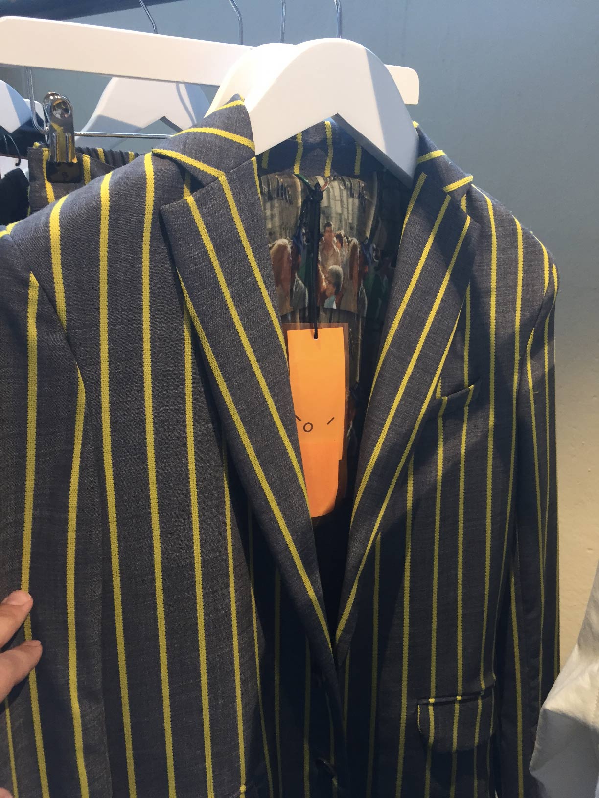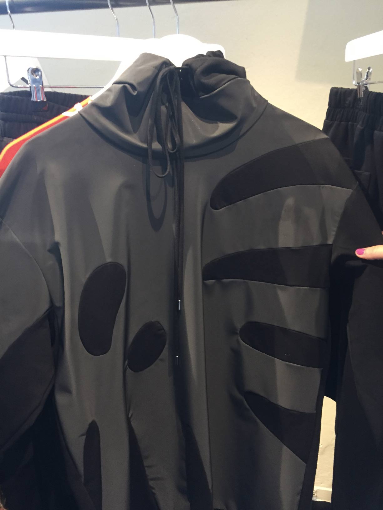 E’ così che a fianco di eccentrici completi rigati, si accostano bomber, lavorati con originalissimi effetti di trapuntatura geometrica, t-shirt e felpe con stampe futistiche che attingono alla digital art.