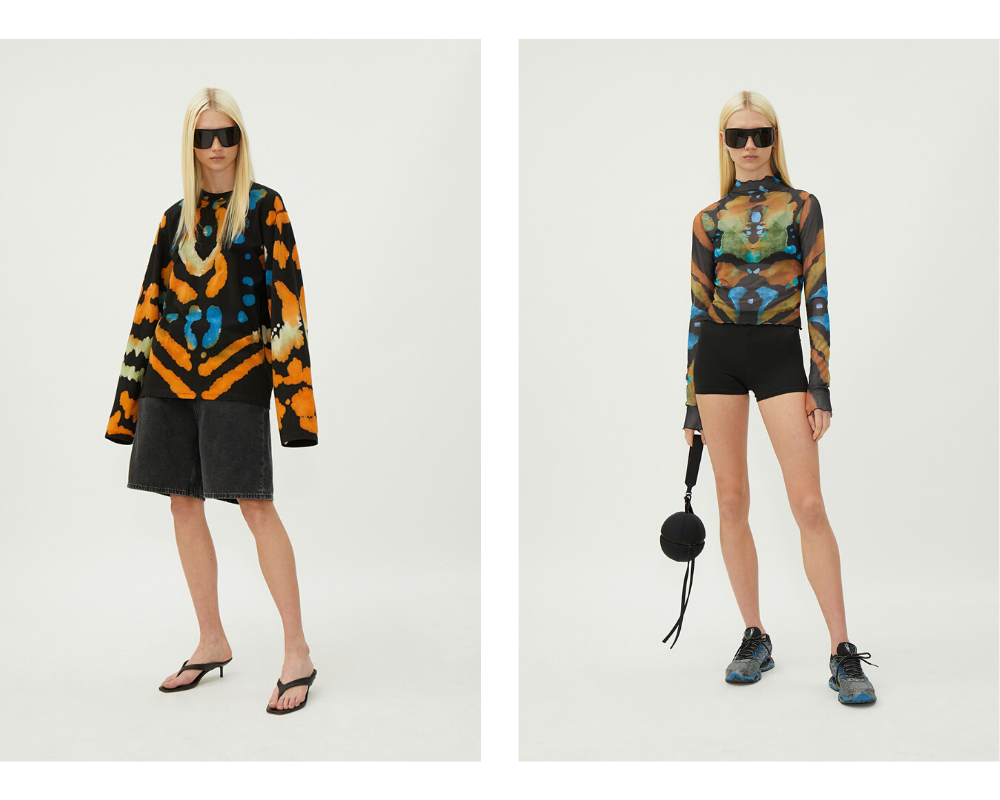 Tra quelli solo da donna troviamo un bikini con stampa tie dye e alcune maglie a manica lunga in tessuto semi-trasparente.